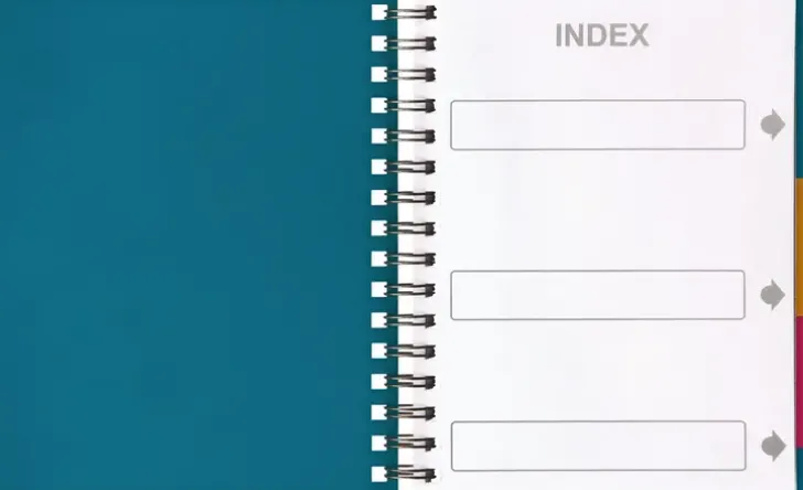 A5-Kokoinen Viivallinen Muistivihko. Kannet Valmistettu Kestävästä Polypropyleenista. Paksu, 70Gsm Paperi. 120 Sivua. Vihkossa On Kolme Eri Väristä Irroitettavaa Välilehteä. Kestävä Kaksoiskierrekiinnitys.