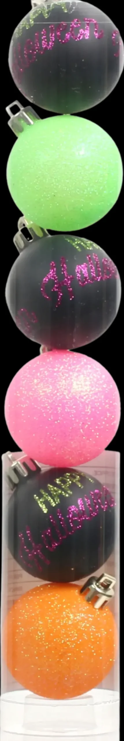 Muovinen Koristepallo Kuuden Kappaleen Pakkauksessa. Pallon Halkaisija 45 Mm. Tädellinen Valinta Halloween-Aiheiseen Koristeluun.