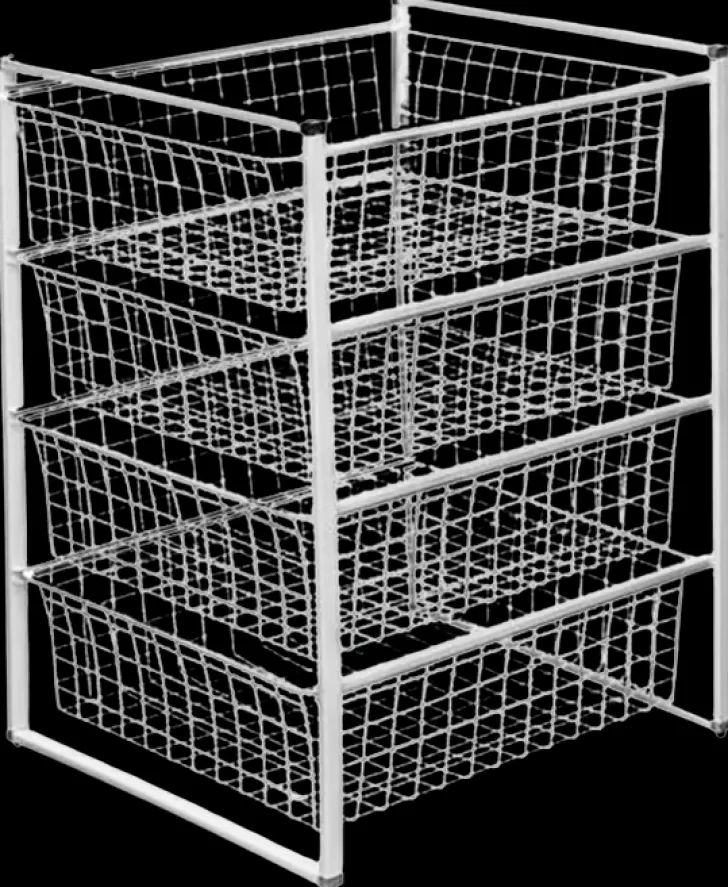 Setti, Jossa Neljä Tukevaa Koria Säätöjaloilla, Mukana Klipsit, Joilla Koripaketteja Voidaan Koota Päällekkäin. Koko 53,5 X 44 X 69,5 Cm (Syvyys X Leveys X Korkeus). Väri: Valkoinen.