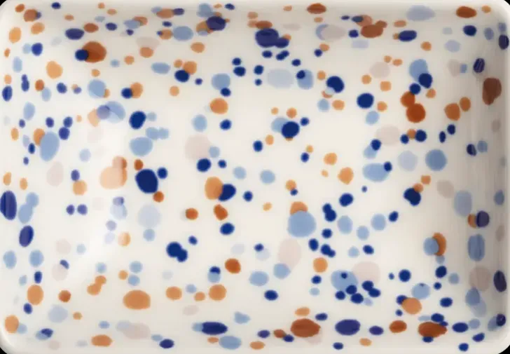 Iittala Juhlistaa Oiva Toikan Värikästä Mielikuvitusta Uudella Siniruskealla Helle-Kuviolla. A7-Kokoinen Helle-Lautanen Sopii Dipeille Ja Kastikkeille.