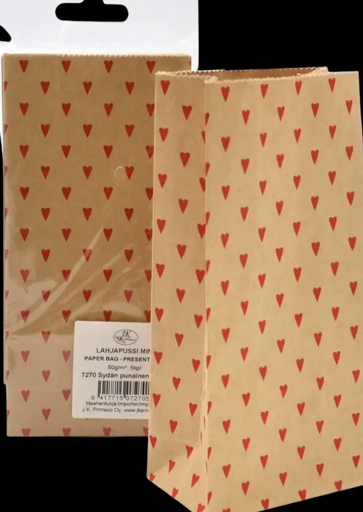 J.K. Primeco Lahjapussi Mini Sydan Punainen Natur 5 Kpl