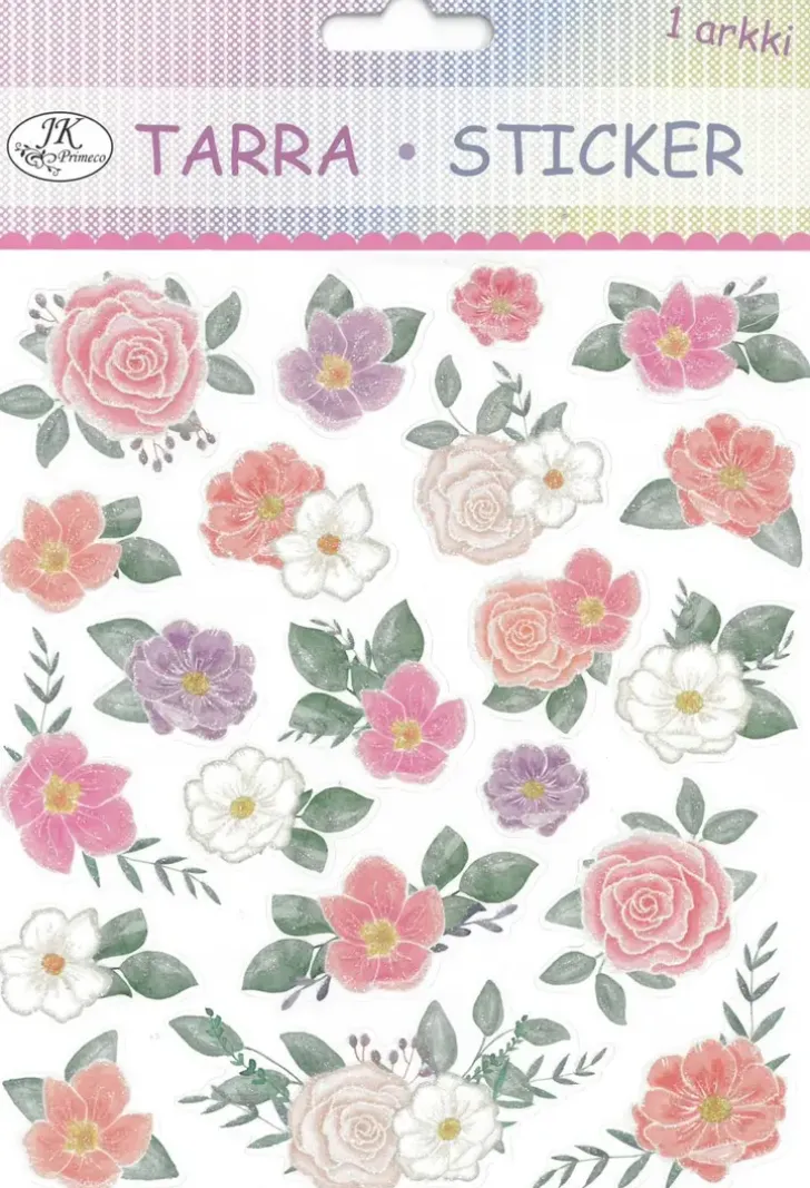 Tarra-Arkki Askarteluun Ja Koristeluun. Pakkaus Sisältää Yhden Arkin Erilaisia Paperisia Tarroja Glitterillä. Arkin Koko On N. 15Cm X 17Cm.