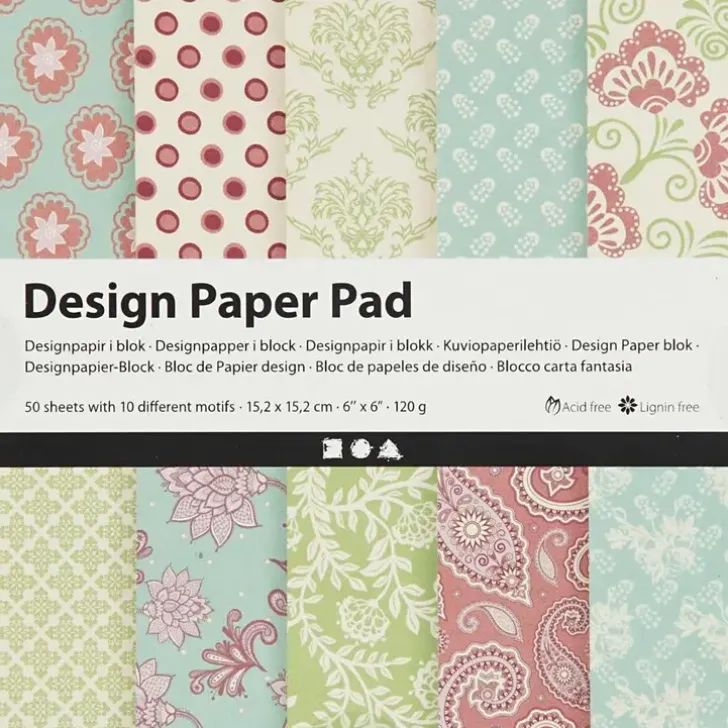 Kuviopaperilehtio, Arkki 15,2X15,2 Cm, 120 G, Mintunvihrea, Lila, 50Ark