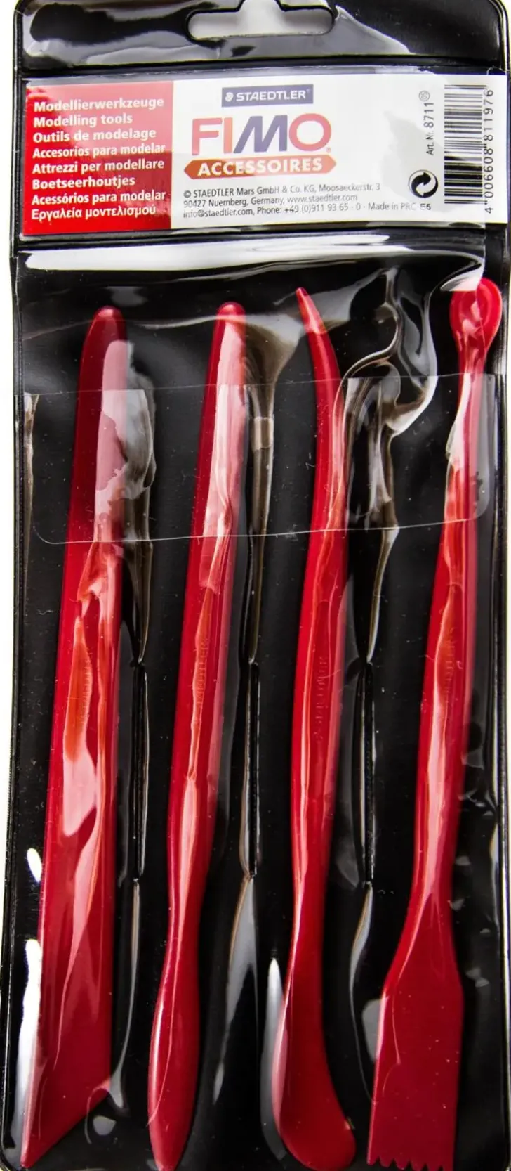 Setissä 4 Erilaista Muovista Muovailupuikkoa Leikkaamiseen, Pyöristämiseen, Paineluun Jne.