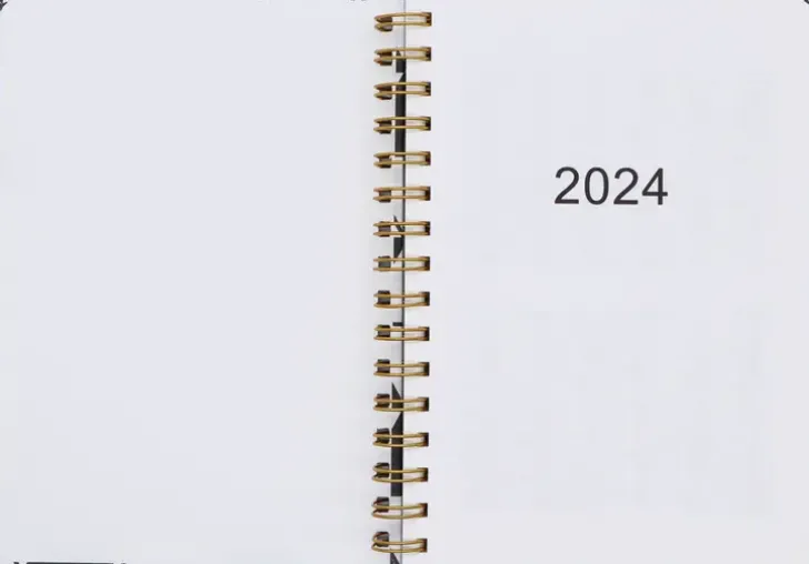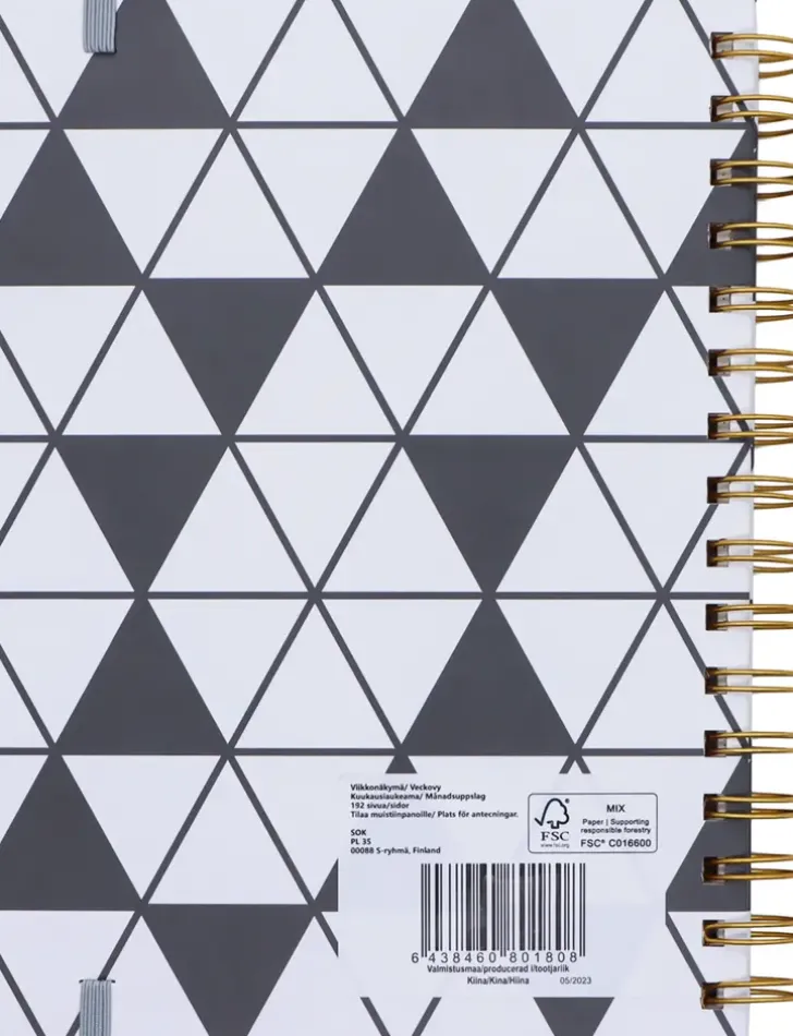 Poytakalenteri A5 Kierresidottu, Musta-Valkoinen
