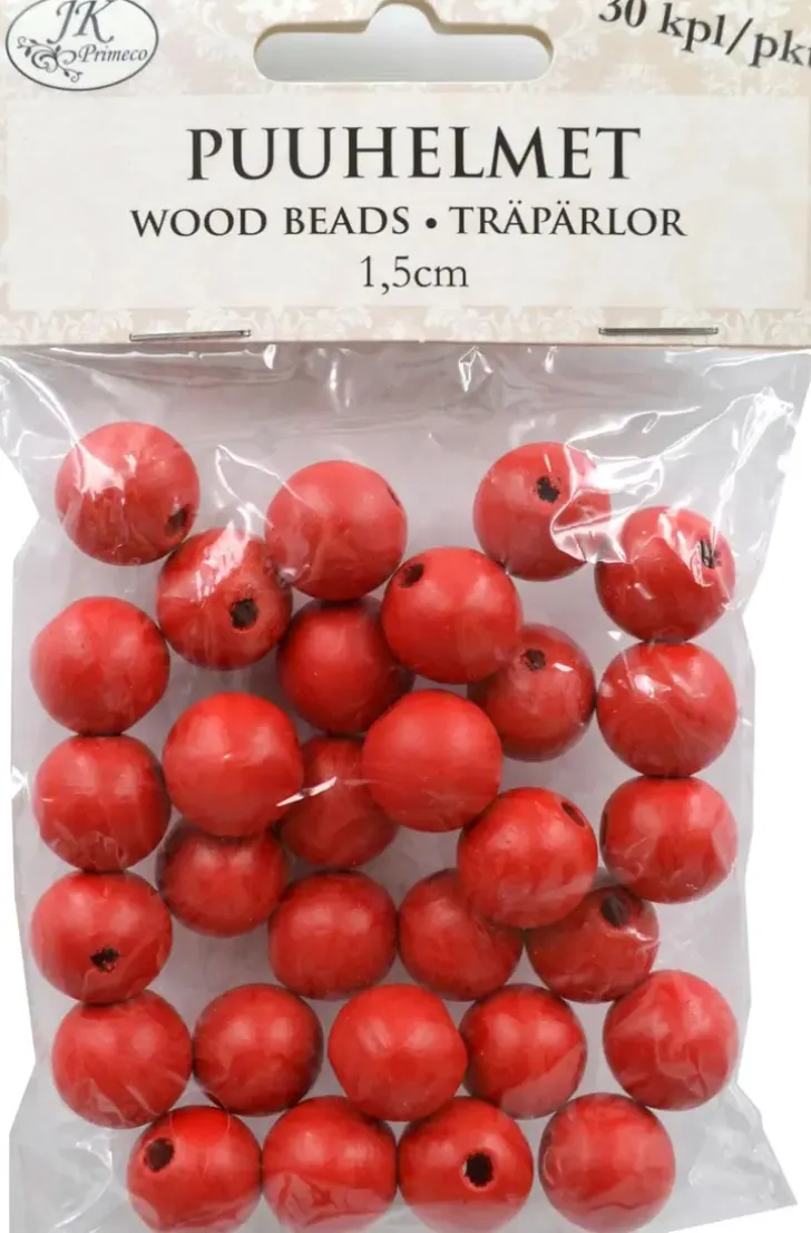 Puuhelmet Punainen 1,5Cm 30Kpl/Pkt