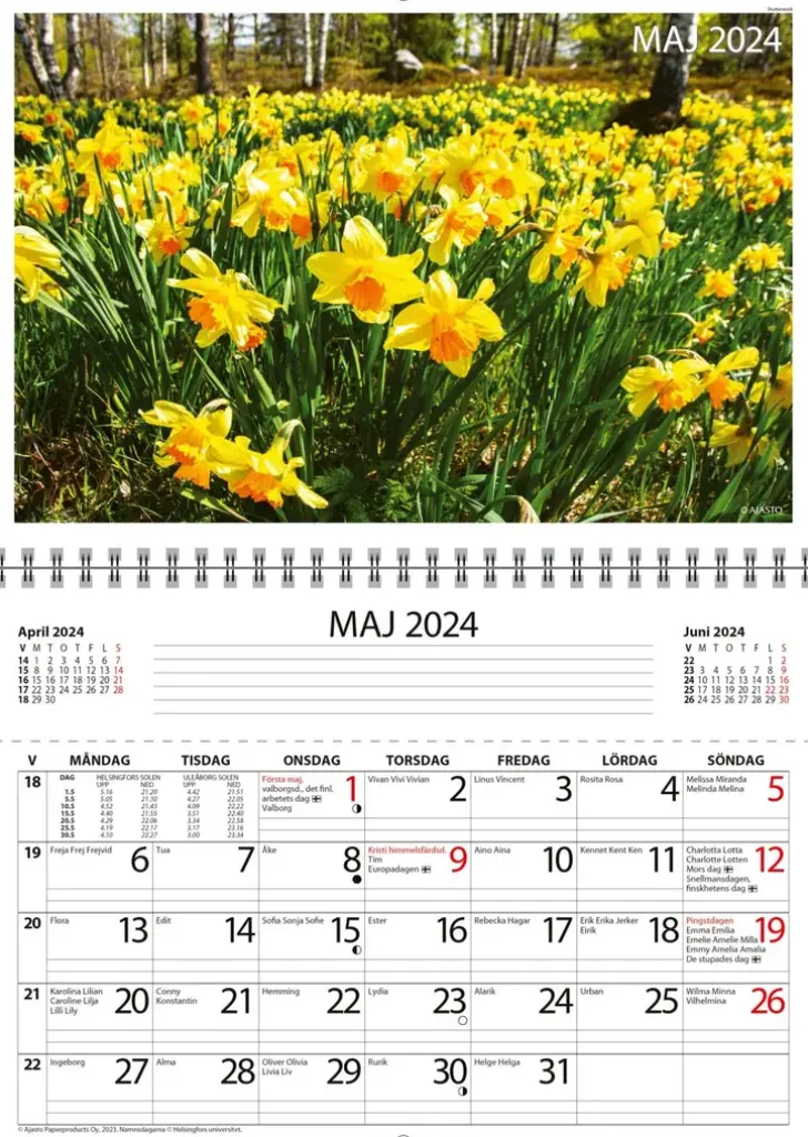 Håller Reda På Viktiga Papper Året Runt. Format 250 X 176 Mm, Uppslagen 250 X 352 Mm; Wire-O-Bunden; Kalenderdelen Bildar En Kom-Ihåg-Ficka För Räkningar Och Viktiga Papper; Plats För Dagliga Anteckningar; Försedd Med En Extra Ficka För Kvitton, Räkningar O.Dyl.; Finlands Karta I Färg; Namnsdagar Och Helgdagar; Solens Upp- Och Nedgångstider (Helsingfors, Uleåborg); Fsc®-Sertifierad Produkt.