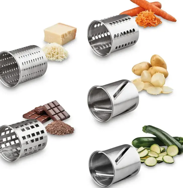 Solis Slice &Amp; More -Vihannesleikkurilla Raastat, Viipaloit Ja Rouhit Ainekset Salaatteihin Ja Kasvisruokiin Tehokkaasti Ja Vaivatta. Helppokäyttöisen Raastimen Myyntipakkaus Sisältää Viisi Ruostumattomasta Teräksestä Valmistettua Huipputerävää Rumputerää. Leikkuurummut Ohueen Ja Paksuun Viipalointiin. Raastamiseen Ja Rouhimiseen Tarkoitettu Terä On Ihanteellinen Koville Aineksille, Kuten Juustoille, Pähkinöille Ja Suklaalle. Karkean Raastamisen Terä On Ihanteellinen Omenoille, Porkkanoille, Sellerille Ja Juustolle. Viides Rumpu Soveltuu Yleiseen Raastamiseen Sekä Keitetyille Pernoille Ja Vaikkapa Valkosipulille. Myyntipakkauksessa Myös Kaksi Kannellista Säilytyskoteloa, Joihin Kumpaankin Mahtuu 2 Leikkuurumpua.Laitteen Muoviosat Ovat Bpa-Vapaata Muovia Ja Laitteen Pinta On Tyylikästä Harjattua Terästä.Laitteessa On Vahva Ja Kestävä 350W Moottori Ja Kaksi Nopeusasetusta. Suuri Syöttöaukko (5,5 X 7Cm) Lisää Käyttömukavuutta. Säilytyspaikka Virtajohdolle Laitteen Pohjassa.