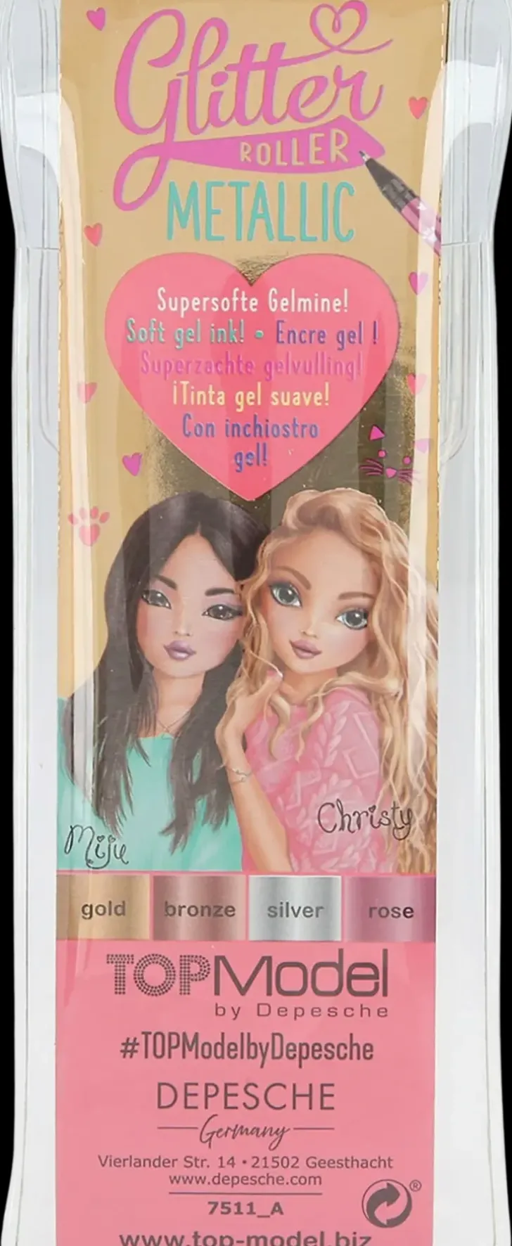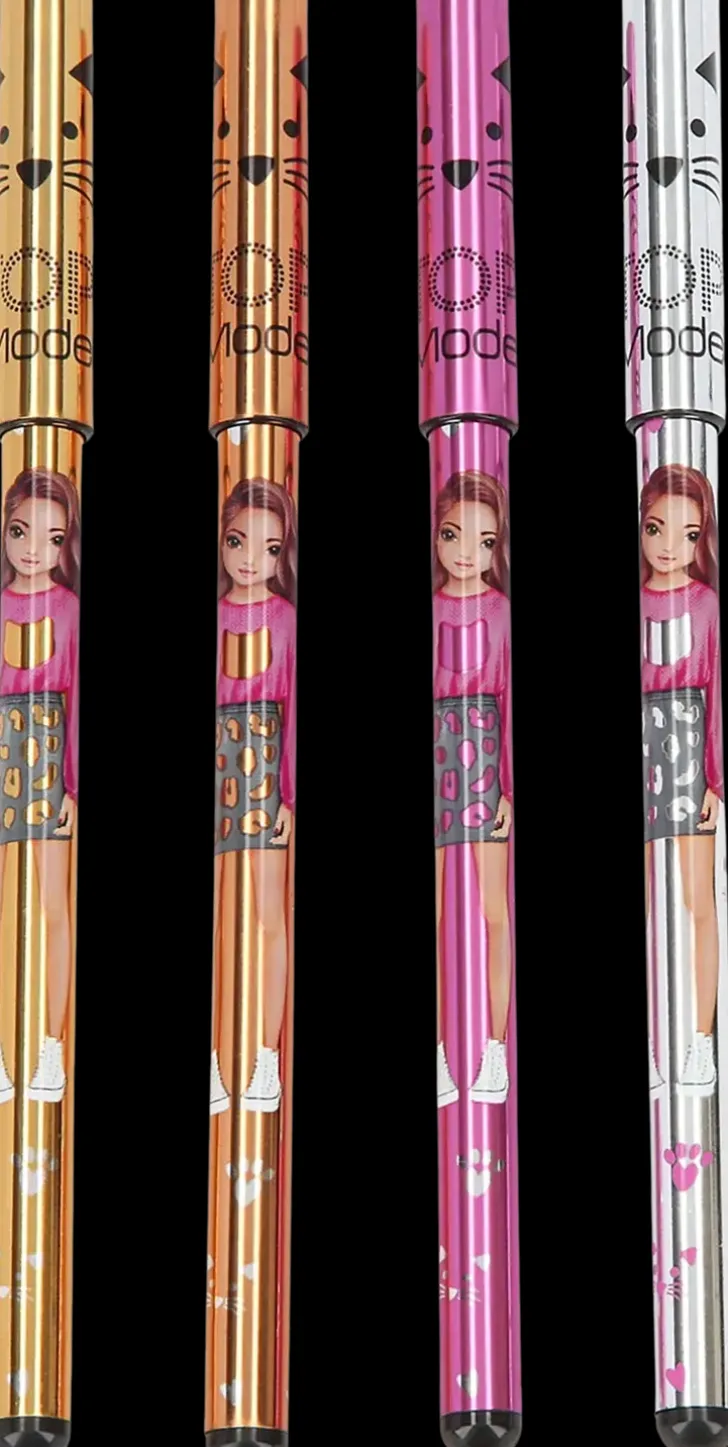 Topmodelin Kimaltelevat Metalligeelikynät! Paketissa Mukana Neljä Eri Väriä: Kulta, Hopea, Pronssi Ja Pinkki.
