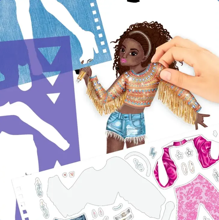 Topmodel Popstar Suunnittelukirja On Täynnä Rokkia Ja Poppia! Suunnittele Upeat Asut Topmodel-Tähdille Värittäen Sekä Mukana Tulevia Tarroja, Sapluunoita Ja Kuvioarkkeja Käyttäen.