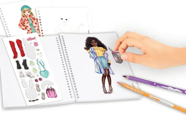 Ihana Topmodel Taskuvärityskirja Kulkee Kanssasi Kaikkialle Näppärän Kokonsa Ansiosta! Kirjan Sivuille Voit Suunnitella Upeita Asukokonaisuuksia Ja Luomuksesi Viimeistelet Mukana Tulevien Tarrojen Avulla