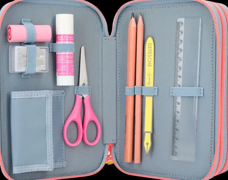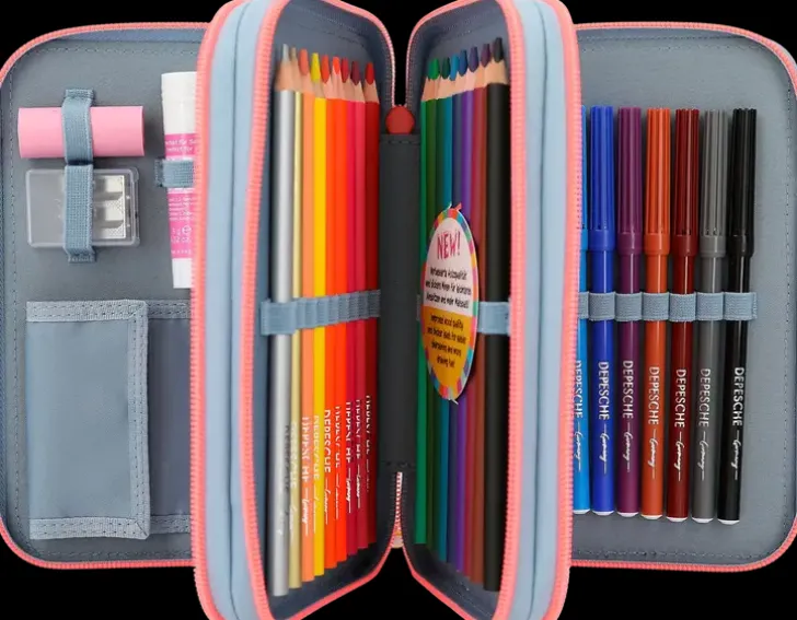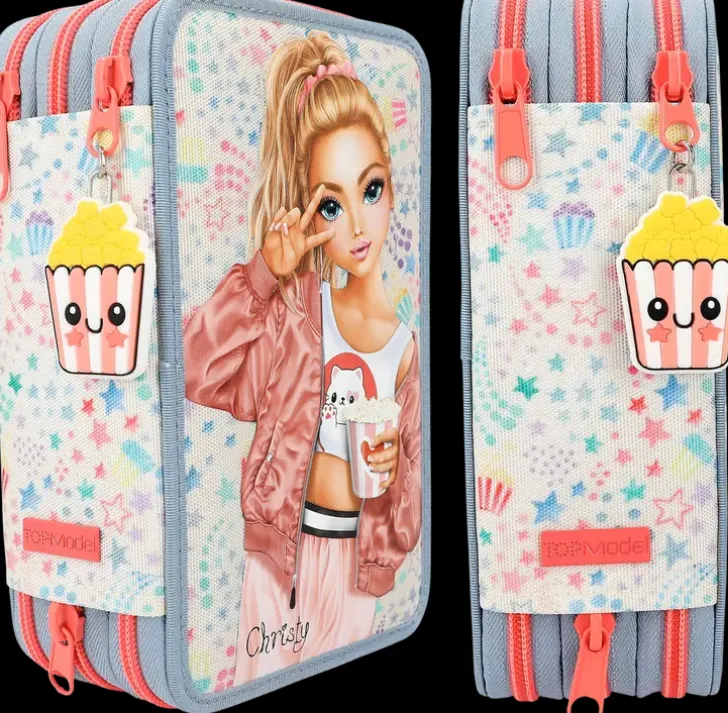 Topmodel Cutie Star -Penaalin Kolme Vetoketjuin Suljettavaa Kerrosta Sulkee Sisälleen Kaiken Mitä Piirtämiseen Ja Kirjoittamiseen Tarvitset: Puuvärikynät Ja Tussit, 18 Kappaletta Kutakin, 2 Lyijykynää, Viivoittimen, Sakset, Liiman, Pyyhekumin Ja Teroittimen! Valmistettu Kierrätysmateriaalista!