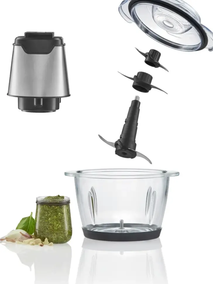 Minisilppuri Lasikulholla Ja Kolmella Irrotettavalla Terällä Tekee Ruoan Valmistuksen Helpoksi! Silppua Nopeasti Ja Vaivatta Sipulit, Pähkinät, Vihannekset Tai Hedelmät, Leikkaa Lihaa Tai Juustoa Ja Tee Hummusta, Pestoa Tai Tahnaa. Minisilppurin Laadukkaat Terät On Valmistettu Ruostumattomasta Teräksestä Ja Voit Käyttää Tarpeen Mukaan Joko Yhtä, Kahta Tai Kaikkea Kolmea Terää Kerralla. Lukitusmekanismi Varmistaa Turvallisen Käytön. Minisilppurissa On Jykevä Lasikulho 1,2 Litran Tilavuudella Ja Helppokäyttöinen Painalluskytkin Tekee Tehonsäädöstä Vaivatonta. Wilfa Minisilppuri On Erittäin Helppo Käyttää Ja Myös Helppo Puhdistaa: Kulho, Kansi Ja Terät Voidaan Pestä Myös Astianpesukoneessa.