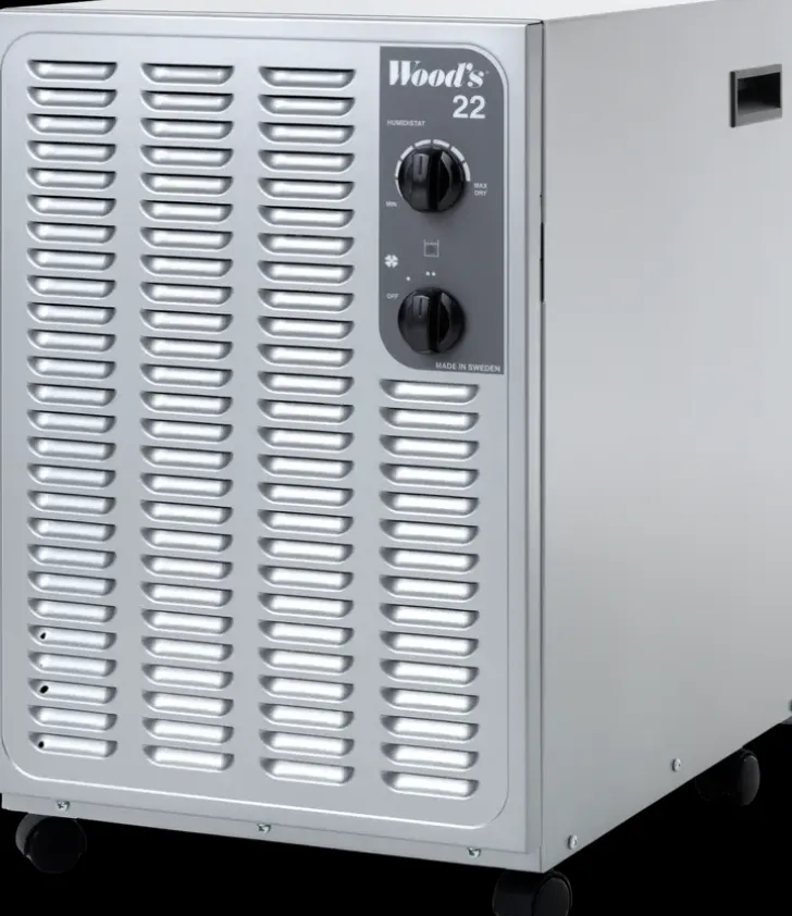 Vankkarakenteinen Wood’S Sw22Fm Kosteudenpoistaja Sopii Alle 100M2 Kellari- Ja Ryömintätilojen Kuivaukseen. Laite Toimii +2°C – +35°C Lämpötilassa.