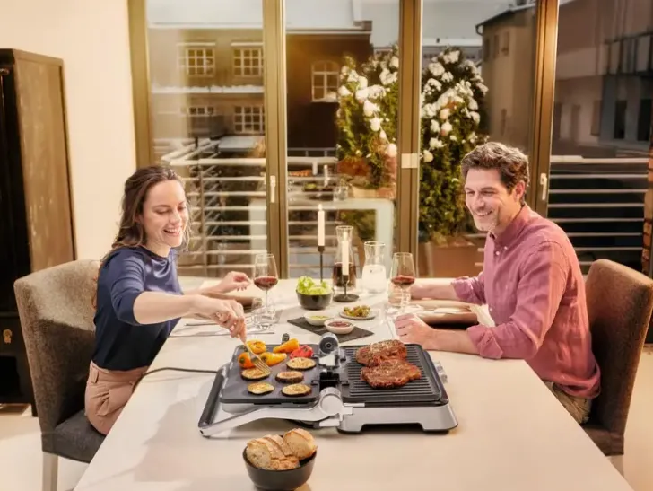 Braun Multigrill 9 -Sähkögrillissä On Tilavat, Pinnaltaan Tarttumattomat Ja Konepesun Kestävät Paistolevyt, Joilla Grillaat Mehukkaat Hampurilaiset Tai Pihvit Isommallekin Porukalle Ja Vohvelilevyillä Paistetut Herkulliset Vohvelit Kruunaavat Aterian.Upotetut Lämmityselementit Vähentävät Kylmien Ainesten Esilämmitysaikaa Taaten Täydellisen Grillaustuloksen Nopeasti Ja Monipuolinen Grilli Muuntuu Moneksi. Kolmen Paistoasennon Ansiosta Multigrill 9 Toimii Kontaktigrillinä, Bbq-Grillinä Sekä Uunina. Uunitoiminto On Täydellinen Hitaaseen Ja Tasaiseen Kypsentämiseen Ja Ruokien Nopeaa Esiruskistamista Varten Löytyy Ruskistustoiminto. Molempien Paistolevyjen Itsenäinen Termostaatti Ja Lämmönsäädin Yhdessä Digitaalisen Näytön Kanssa Mahdollistavat Tarkan Paistamisen.Kokkauksen Jälkeen Grillin Puhdistaminen Sujuu Vaivatta. Pinnaltaan Tarttumattomat Paistolevyt Irtoavat Napin Painalluksella, Jonka Jälkeen Ne Voi Laittaa Tiskikoneeseen. Grilli On Hetkessä Putsattu Seuraavaa Käyttökertaa Varten Ja Lukitusjärjestelmän Ansiosta Grillin Varastointi Tai Kuljetus Helpottuu.Myyntipakkaus Sisältää: 2 Uritettua Grillilevyä, 2 Vohvelilevyä Ja 2 Sileää Paistolevyä Sekä Rasvankeruuastian, Kaapimen Ja Vohvelitaikinan Annostelijan. Teho 2000 W. Takuu 2 Vuotta.