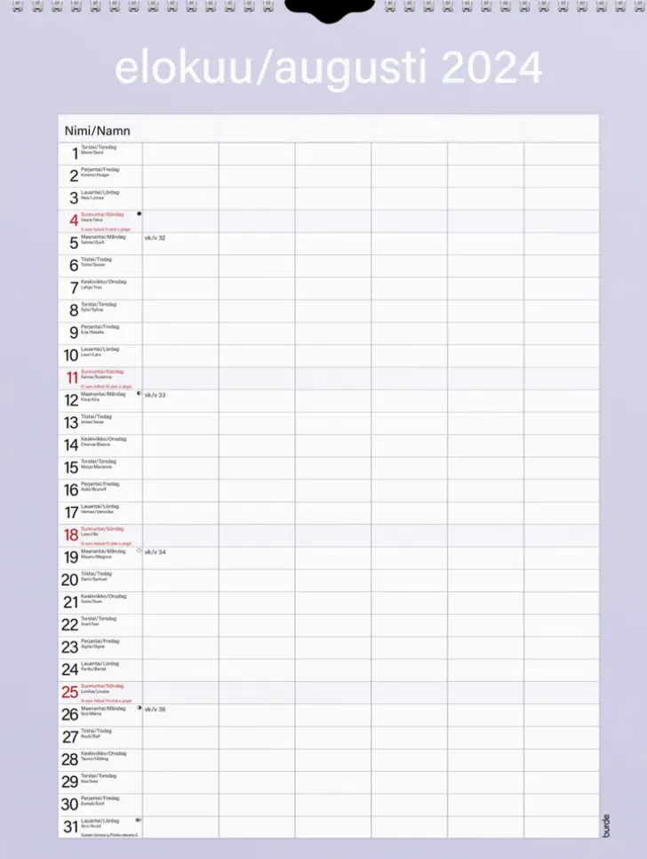 Burde Perhekalenteri 2024 Perhekalenteri Kateva