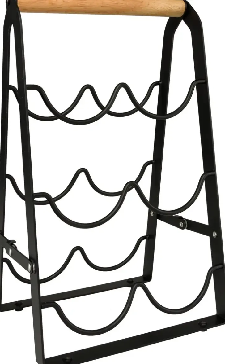 House Taittuva Viiniteline. Metallista Telinettä On Helppo Siirtää Telineen Puukahvan Avulla. Koko 21 X 17 X 35,5 Cm.