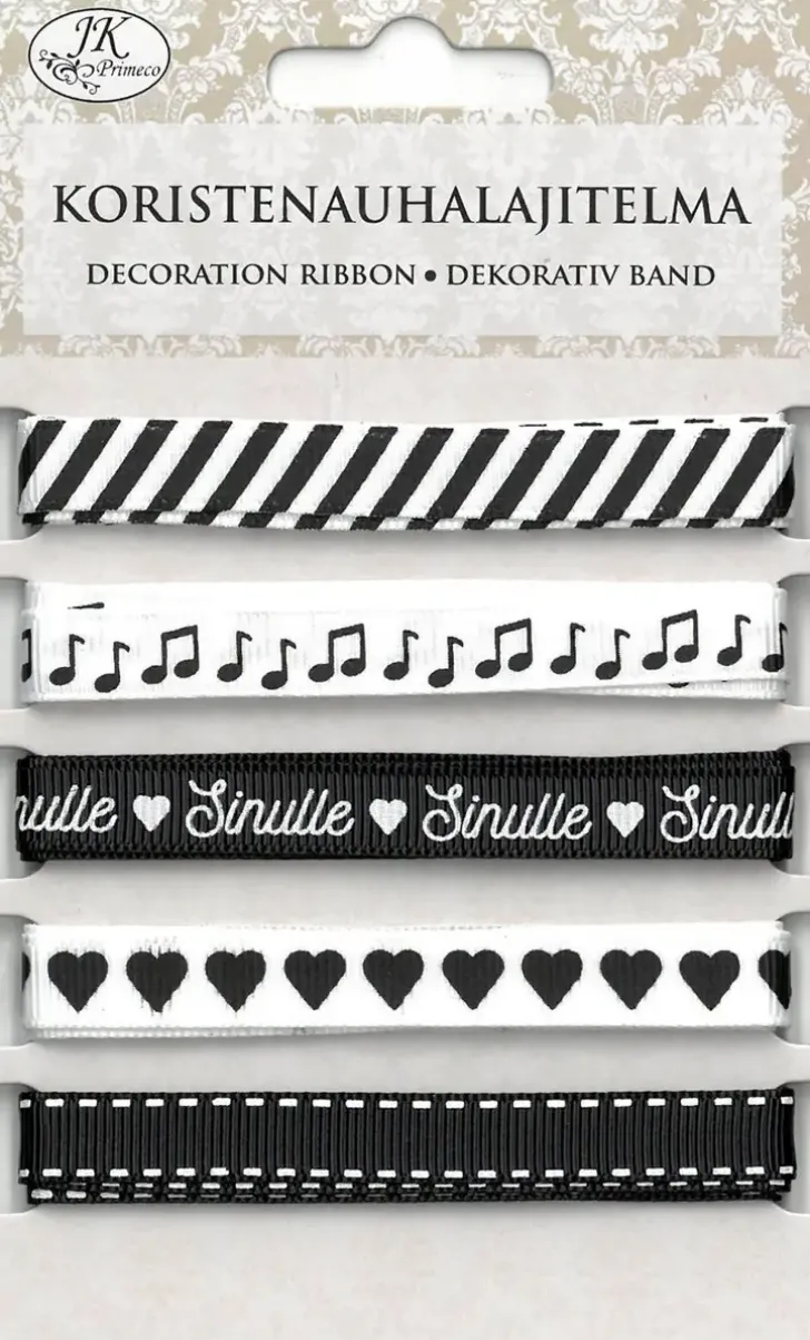 J.K. Primeco Koristenauhalajitelma Mustavalko 5 Erilaista X 1 Metri