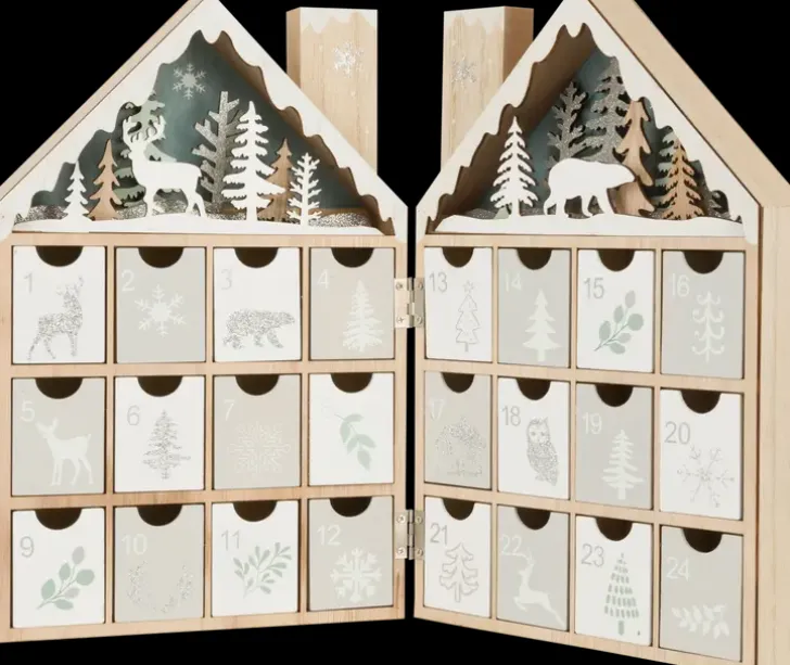Talon Muotoinen Joulukalenteri, Jonka Luukkuihin Voi Lisätä Haluamansa Sisällön. Kalenteri Toimii Myös Jouluisena Sisustuselementtinä. Mitat: 45 X 23 X 7 Cm. Vain Koristekäyttöön.