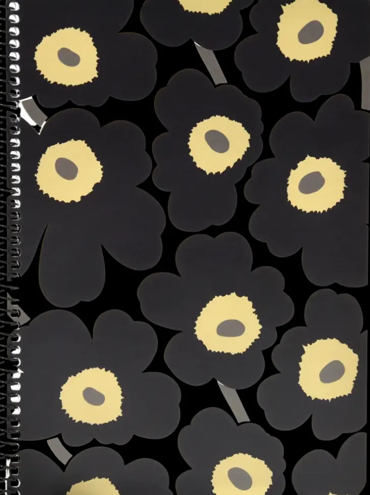 A5-Kokoinen Kierrevihko, Jossa On Marimekko Unikko Kuviointi; Vihossa On 40 Viivallista Lehteä;