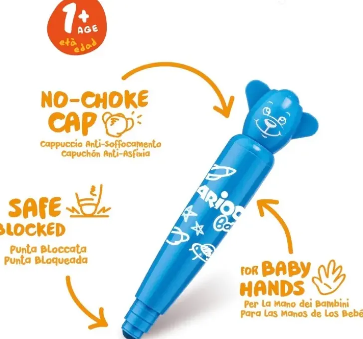 6 Baby Teddy 1+ Huopakynäsarja. Microban Antibakteerinen, Joka Suojaa Kyniä Koko Niiden Elinkaaren Ajan. Erittäin Turvalliset Huopakynät, Jotka On Suunniteltu Lasten Ensimmäisten Pelien Ja Tarinoiden Päähenkilöiksi! Ergonominen Muotoilu On Suunniteltu 12 Kuukauden Ikäisten Lasten Käsiin. Superpestävä, Myrkytön Muste, Pestävä Iholta Ja Kankaista Saippuattomalla Vedellä. Dermatologisesti Testattu.
