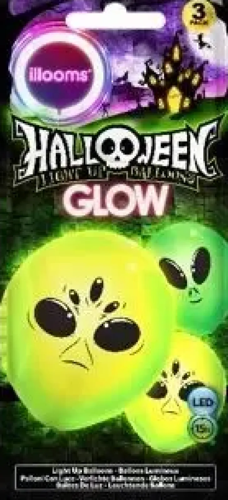 Luo Erikoinen Tunnelma Halloween-Juhlissa Näillä Alienin Muotoisilla Led-Ilmapalloilla. Pakkaus Sisältää Kolme Ilmapalloa, Joita Voidaan Käyttää Sisä- Ja Ulkotiloissa.