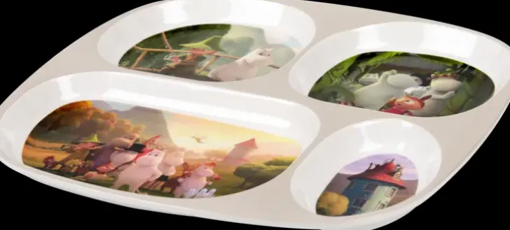 Kätevä Nelilokeroinen Lautanen. Lautasen Muumiaiheinen Kuvitus On 2019 Julkaistusta Muumilaakso Animaatiosta. Sopii Hyvin Perheen Pienimmille Sormiruokailuun. Valmistettu Melamiinista. Käsinpesu Suositeltavaa. Ei Mikroon.