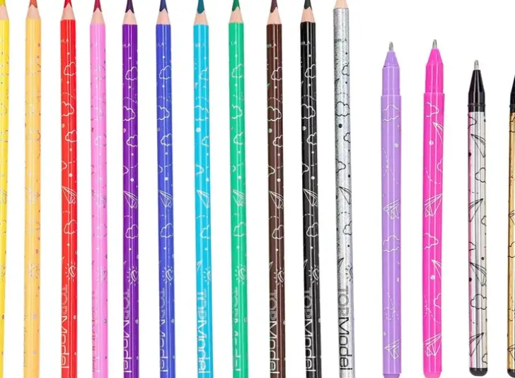 Tässä Upeassa Suunnittelukirjassa On Monta Sivua, Joihin Värittää Trendikkäitä Asukokonaisuuksia! Ja Mikä Parasta, Samassa Paketissa Mukana Tarroja Ja Värityskynät (11 Puuvärikynää, 2 Ohutkärkistä Tussia Ja 2 Geelikynää) – Siis Kaikki, Mitä Piirtämiseen Ja Suunnitteluun Tarvitset!