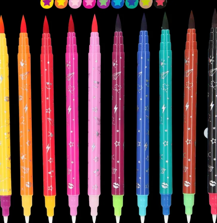 Pakkauksessa Mukana 10 Eriväristä, Kaksipäistä Tussia: Yhdellä Päällä Värität Ja Toisella Loihdit Esiin Uuden Värin! Kynät On Pakattu Kätevään Pystytelineeseen, Jossa Ne Pysyvät Hyvässä Järjestyksessä. Psst! Nämä Kynät Ovat Täyttä Taikuutta…
