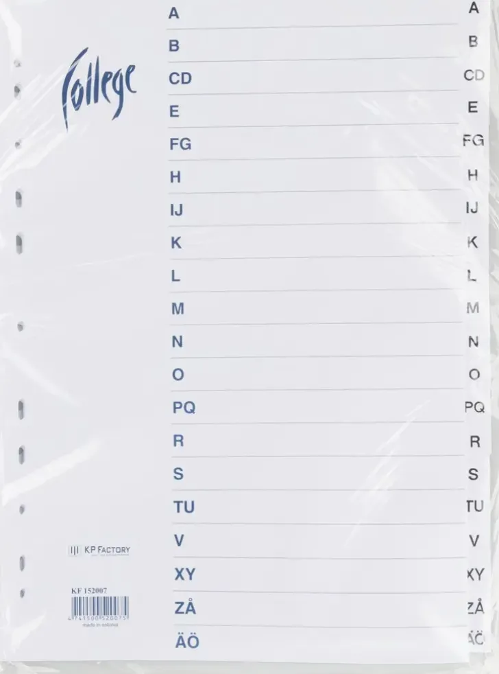 Välilehti A4 Kokoisille Arkeille. Valkoiset Lehdet, A-Ö Hakemisto. Viivoitus Etulehdessä. Monireiitys, Joka Sopii Lähes Kaikkiin Mappeihin Ja Kansioihin. Välilehden Ulkomitat 225 X 298 Mm.